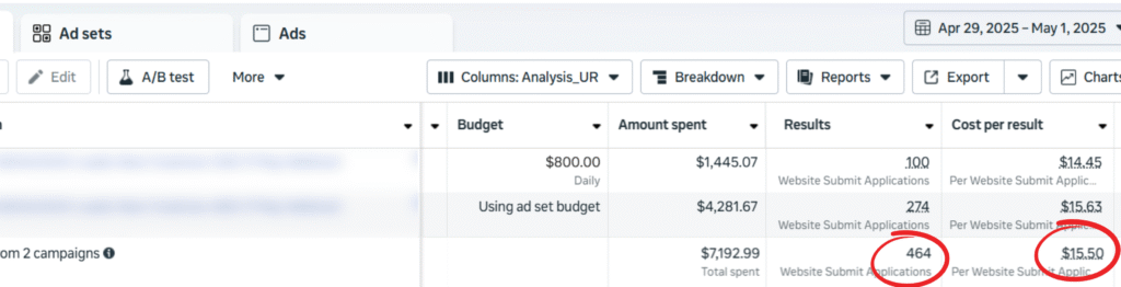 Drove 464 Leads in 3 Days at $15.50 CPL getting $40K in Revenue from $7.2K Ad Spend (5.5X ROAS)